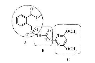 磺酰脲類除草劑是除草劑中品種最多的一類除草劑,上市品種多達(dá)40多個(gè)。其中銷售額上億美元的品種就有9個(gè),所有此類除草劑的結(jié)構(gòu),都是對(duì)圖1中A或C基團(tuán)的改變,它們的連接鍵基本上一成不變。