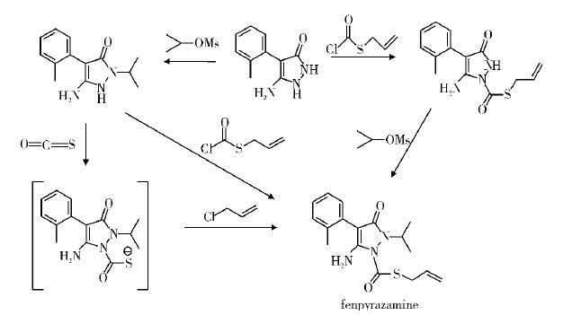 如殺菌劑fenpyrazamine的創(chuàng)制中,科研人員將“橋”替代“硫醚”基,使化合物的活性提升了10倍之多,且安全性明顯提高。圖2為新型殺菌劑fenpyrazamine合成路線。