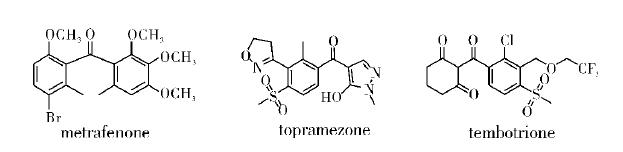 10余年前曾有人提出,在二甲芳基間以羰基為“橋”進(jìn)行連接通常無(wú)農(nóng)藥活性,但以后出現(xiàn)了一些以羰基為連接鍵的新農(nóng)藥,其中可能有新理論,對(duì)新農(nóng)藥的創(chuàng)制大有裨益。圖3為以羰基為連接鍵的新農(nóng)藥品種。