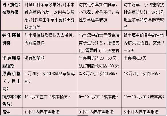 幾種滅生性除草劑對(duì)比