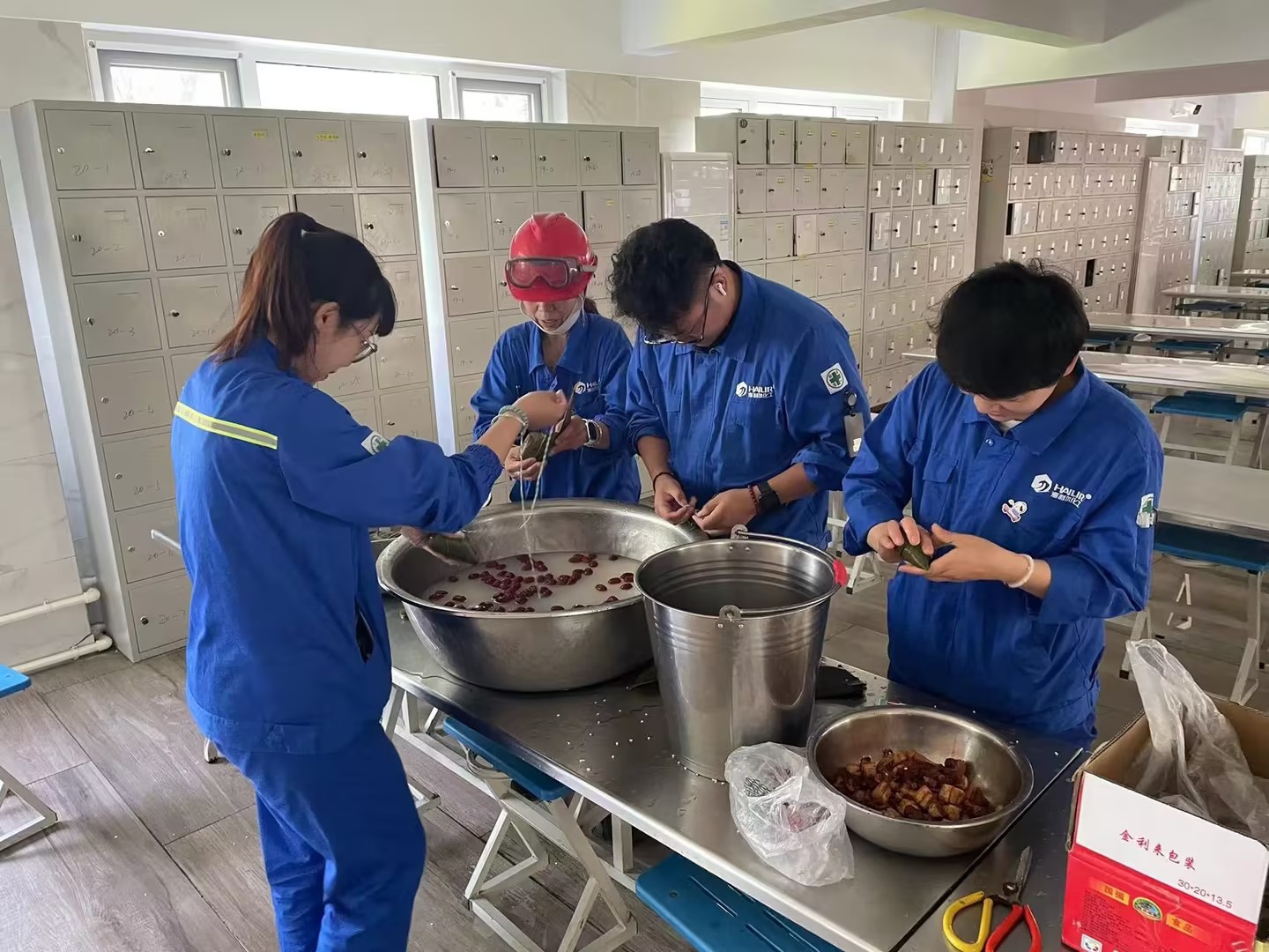 ? ? ? ?來(lái)自銷售保障戰(zhàn)線的家人們圍成一桌,他們包起花生餡的粽子,期待我們國(guó)內(nèi)制劑的家人們?cè)谔镩g地頭夏收夏種的戰(zhàn)斗中花開(kāi)遍地、創(chuàng)造佳績(jī);來(lái)自總部后勤的家人們聚在一起,他們包著紅棗粽子,祈愿海利爾事業(yè)更紅火、家人們生活更幸福;來(lái)自研發(fā)戰(zhàn)線的家人們自成一隊(duì),他們將蜜棗包入粽子,勉勵(lì)自己要助力集團(tuán)發(fā)展、共創(chuàng)甜蜜生活。