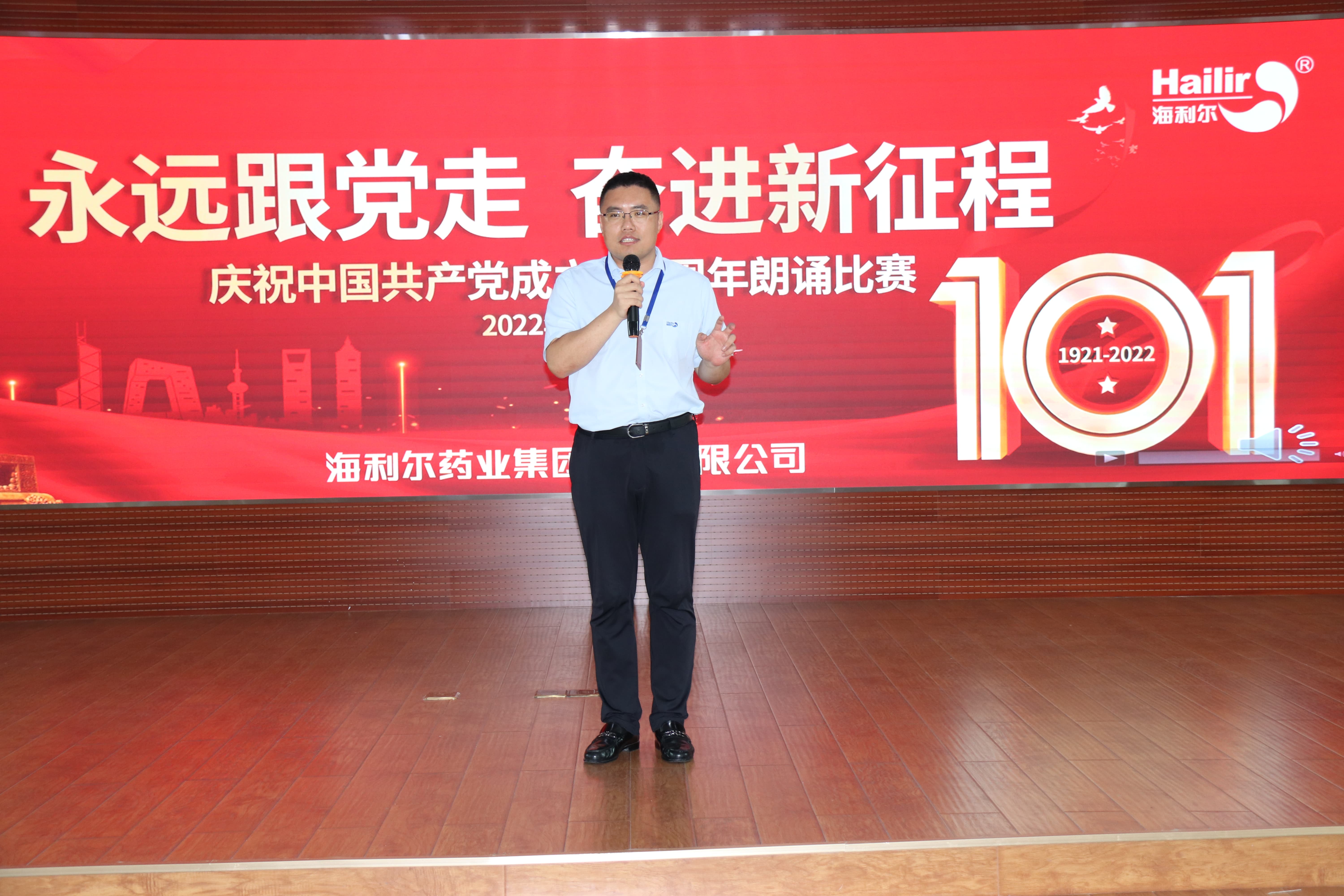 ? ? ? ?集團(tuán)董事長(zhǎng)葛堯倫、集團(tuán)總裁葛家成、集團(tuán)總工程師兼研發(fā)中心主任王良清、集團(tuán)制劑生產(chǎn)總監(jiān)楊勇、集團(tuán)人力資源總監(jiān)姜延紅、集團(tuán)行政管理總監(jiān)譚長(zhǎng)雁等領(lǐng)導(dǎo)出席活動(dòng)并擔(dān)任評(píng)委。8個(gè)參賽單位(按出場(chǎng)順序)——山東海利爾工廠、國(guó)際業(yè)務(wù)中心、奧迪斯工廠、恒寧生物、青島海利爾工廠、滕潤(rùn)翔、凱源祥工廠、研發(fā)中心一一登場(chǎng),貢獻(xiàn)了一場(chǎng)場(chǎng)別開(kāi)生面的朗誦表演。臺(tái)上朗讀者聲情并茂,初心激蕩;臺(tái)下觀眾席掌聲陣陣,同心飛揚(yáng)。一場(chǎng)充滿激情與創(chuàng)意、對(duì)黨、對(duì)祖國(guó)、對(duì)海利爾愛(ài)的表白深情演繹。