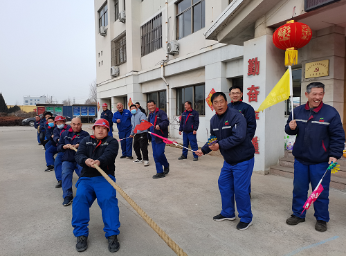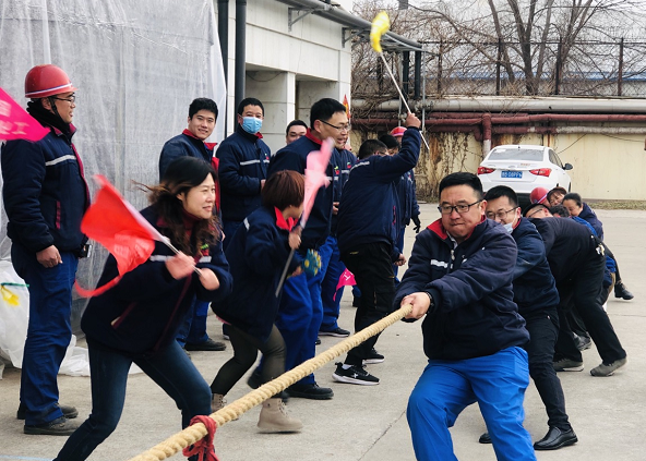 ? ? ? ? 當日早上八時,象征著凝心、聚力、拼搏、生機的凱源祥開春拔河開始。本次比賽中,人力、財務(wù)、安環(huán)、技術(shù)、采購組成一隊(后勤隊),品管科、設(shè)備科、物管科組成一隊(生產(chǎn)輔助隊),一、四車間為一隊,二、三車間為一隊。