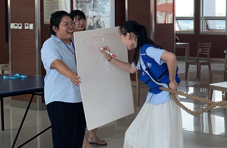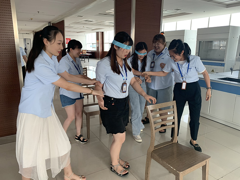 當天下午,集團總部八樓活動室內(nèi)熱火朝天,小伙伴們齊聚一堂,沉浸在“穿針引線”“蒙眼避障”“角力繪畫”“智力逃脫”等游戲的歡樂中。