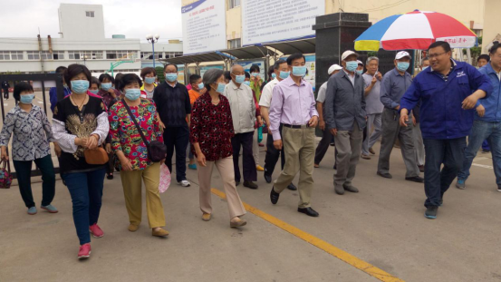 8點20分,我廠派出兩名職工分別到都霖馨苑小區(qū)和后田村小區(qū)迎接參觀居民。9時許,居民已全部到廠,并在工廠籃球場集合。