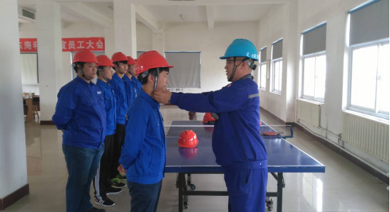 廠級培訓結(jié)束后,18名學生分配到車間。一車間主任王玉雷、二車間主任劉春輝與學生見面,兩位主任為18名大學生佩戴安全帽,整理工作服,檢查員工“標配”裝備。期望新員工的加入,為海利爾的明天注入新鮮活力。