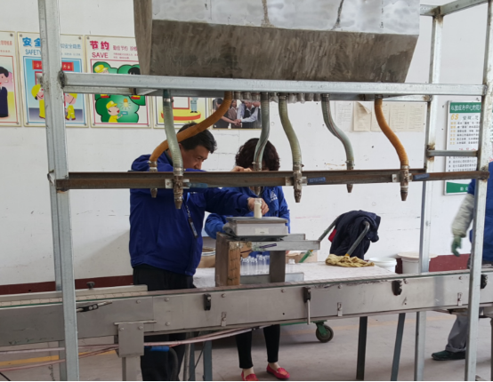 ?奧迪斯工廠顆粒劑生產(chǎn)任務重,重點產(chǎn)品、戰(zhàn)略產(chǎn)品瓶裝品規(guī)的顆粒劑全部都是傳統(tǒng)手工挖料,效率很低,而且需要多工序才能完成產(chǎn)品的生產(chǎn)(挖料、擰蓋、旋蓋、貼標、噴防偽)生產(chǎn)效率根本沒法達到市場銷售的需求,趙廠長與蘇廠長針對此項工作專門進行討論研究,如何進行效率提升?要用設(shè)備代替?zhèn)鹘y(tǒng)手工,經(jīng)研究確定制作半自動顆粒灌裝機,最終確定方案由蘇廠長親自現(xiàn)場跟進加工實施: