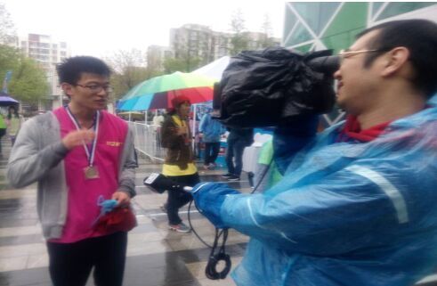 ? ? ? ? 第一個(gè)跑到終點(diǎn)的海利爾伙伴接收青島電視臺記者的采訪: