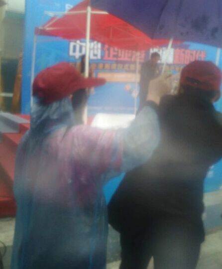 ? ? ? ? 簽完到先在雨中來個(gè)賽前合影吧: