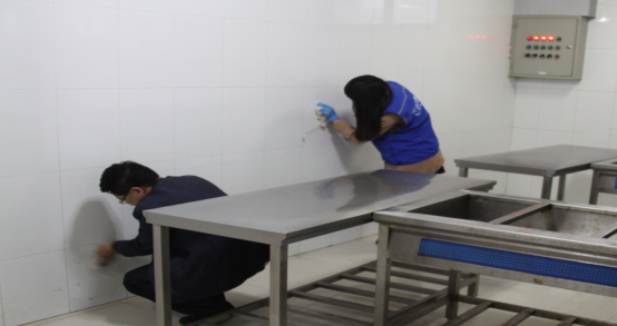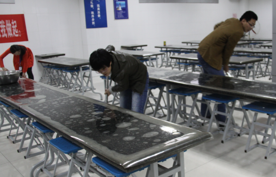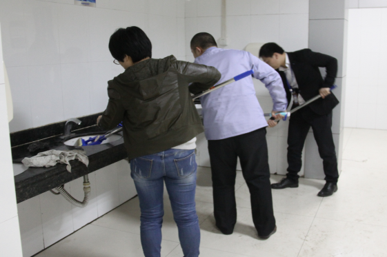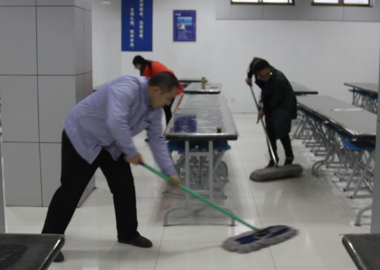 大家穿著統(tǒng)一的藍色馬甲,一下子意識到了自己的身上的責(zé)任和使命。我們這次活動的主要任務(wù)是清理餐廳和家屬樓一單元。大家明確分工,領(lǐng)著工具便風(fēng)風(fēng)火火開展起來。讓我們一起來看看志愿者的風(fēng)采吧:
