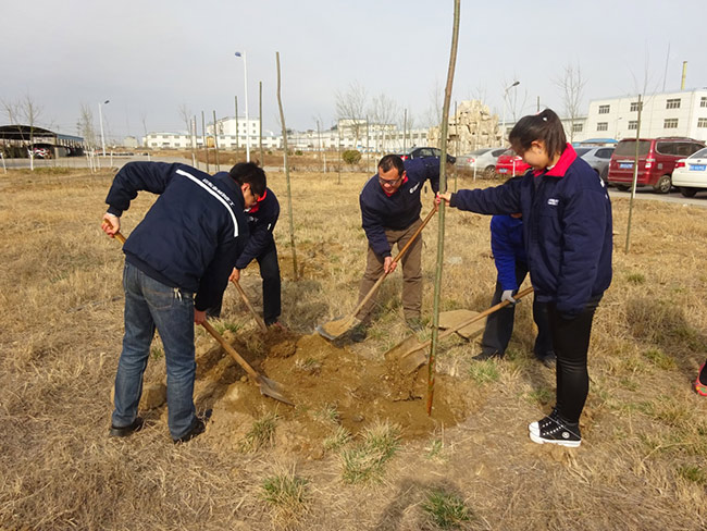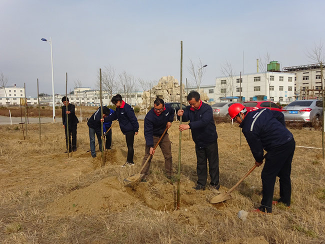 自進(jìn)入3月份以來,干部員工利用班前班后時(shí)間,在車間周圍、廠內(nèi)干道兩旁,廠前辦公區(qū)等地方,植樹210棵。兩年來累計(jì)植樹500余棵。