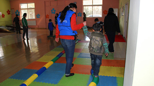 ? ? ? ?從穿上海利爾義工服的那一刻起,我們就覺(jué)得自己身上帶著一份很重的責(zé)任,用心與小朋友交流,用關(guān)愛(ài)去感化他們。進(jìn)入康復(fù)訓(xùn)練大廳,就能感受到這群孩子的“不一樣”,每個(gè)孩子都是個(gè)人玩?zhèn)€人的,沒(méi)有溝通和交流,也沒(méi)有孩子在意我們的到來(lái)??吹竭@個(gè)場(chǎng)景,我們都感到很心疼。我們漸漸地融入他們,整個(gè)下午我們一直在努力與他們玩游戲,幫助他們做康復(fù)訓(xùn)練。我們每個(gè)人都很耐心的跟他們玩在一起。他們對(duì)我們笑了,我們就很開(kāi)心,他們跟我們講話了,我們就很滿足。